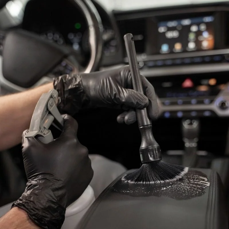 INTERIOR: Interior dusting, Glass cleaning, Air freshener, Heavy vacuuming, Trunk vacuuming (must be empty). Detailing of steering wheel, dashboard, center console, cup holder, door panels, seats and mats